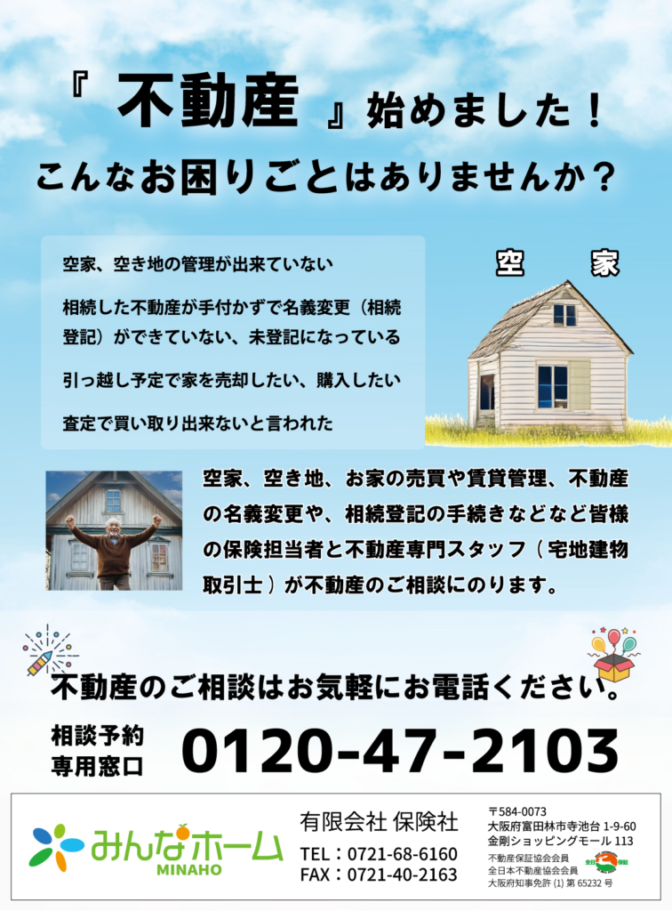 不動産事業開始のお知らせ(屋号:みんなホーム)